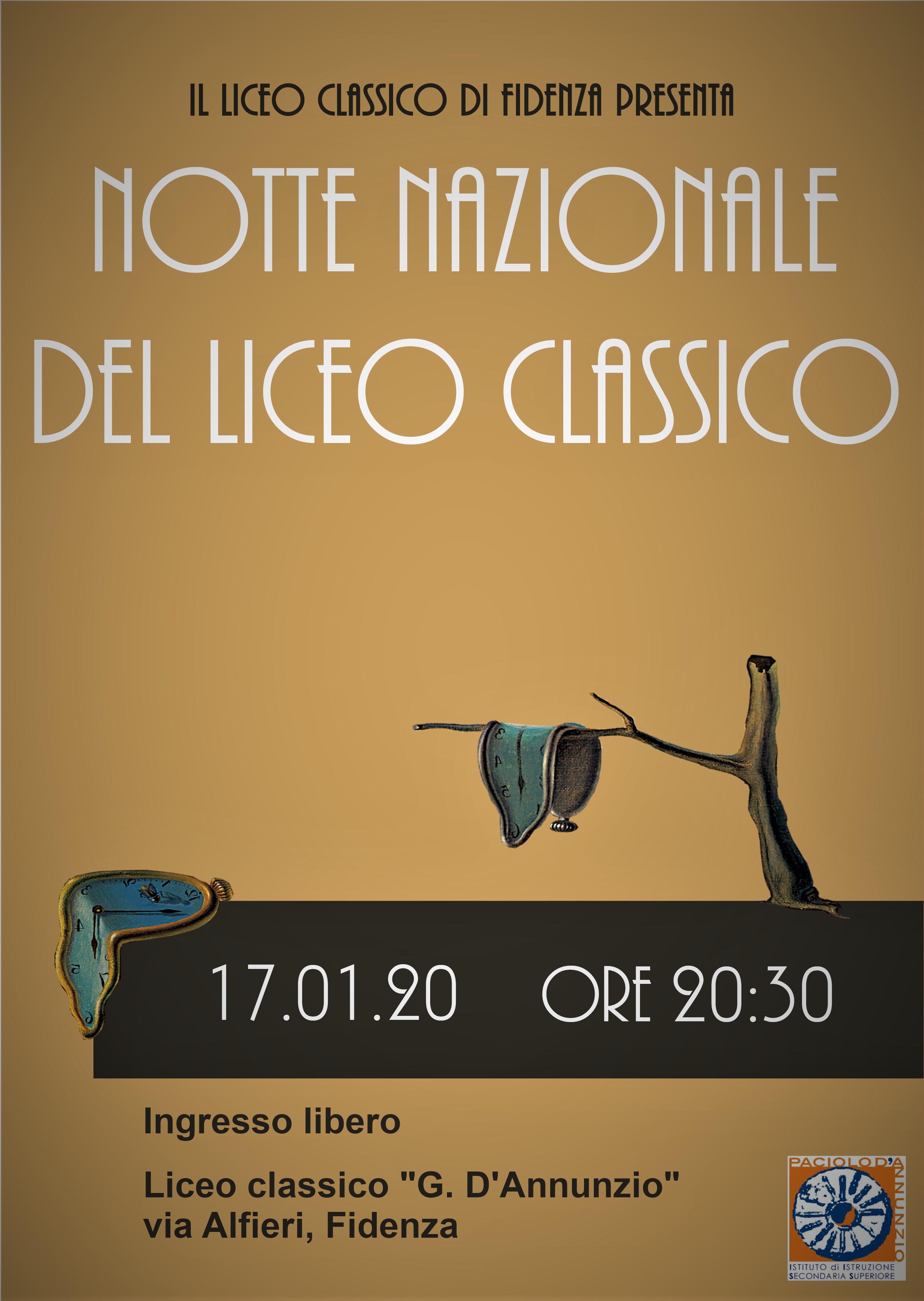 Presso il Liceo Classico di Fidenza in via Alfieri avrà luogo, venerdì 17 gennaio 2020 alle ore 20.30 alle 24.00, la VI Edizione della Notte Nazionale del Liceo Classico, un evento molto atteso da tutti gli studenti del “D’Annunzio” e sicuramente una delle proposte più innovative degli ultimi anni nella scuola.