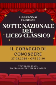 Teatro Magnani di Fidenza, venerdì 27 marzo 2026 ore 20:30. Spettacolo del Liceo Classico D'Annunzio di Fidenza per la Notte Nazionale del Liceo Classico 2026